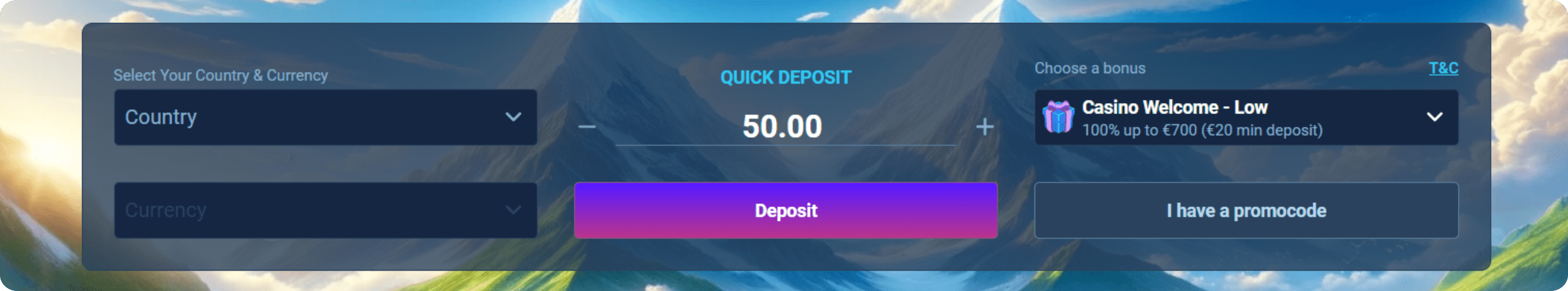 Deposits are instant, fee-free, and available from as little as €20. Crypto users enjoy immediate confirmations and zero intermediary restrictions.